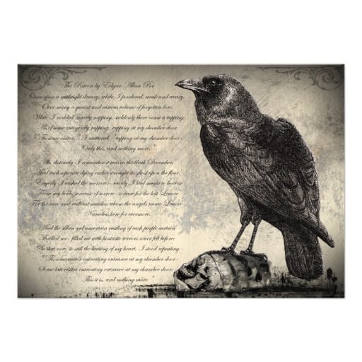 Free Vintage Raven Halloween Party Invitation Templates