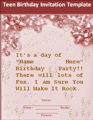 Teenager Birthday Invitations Layout
